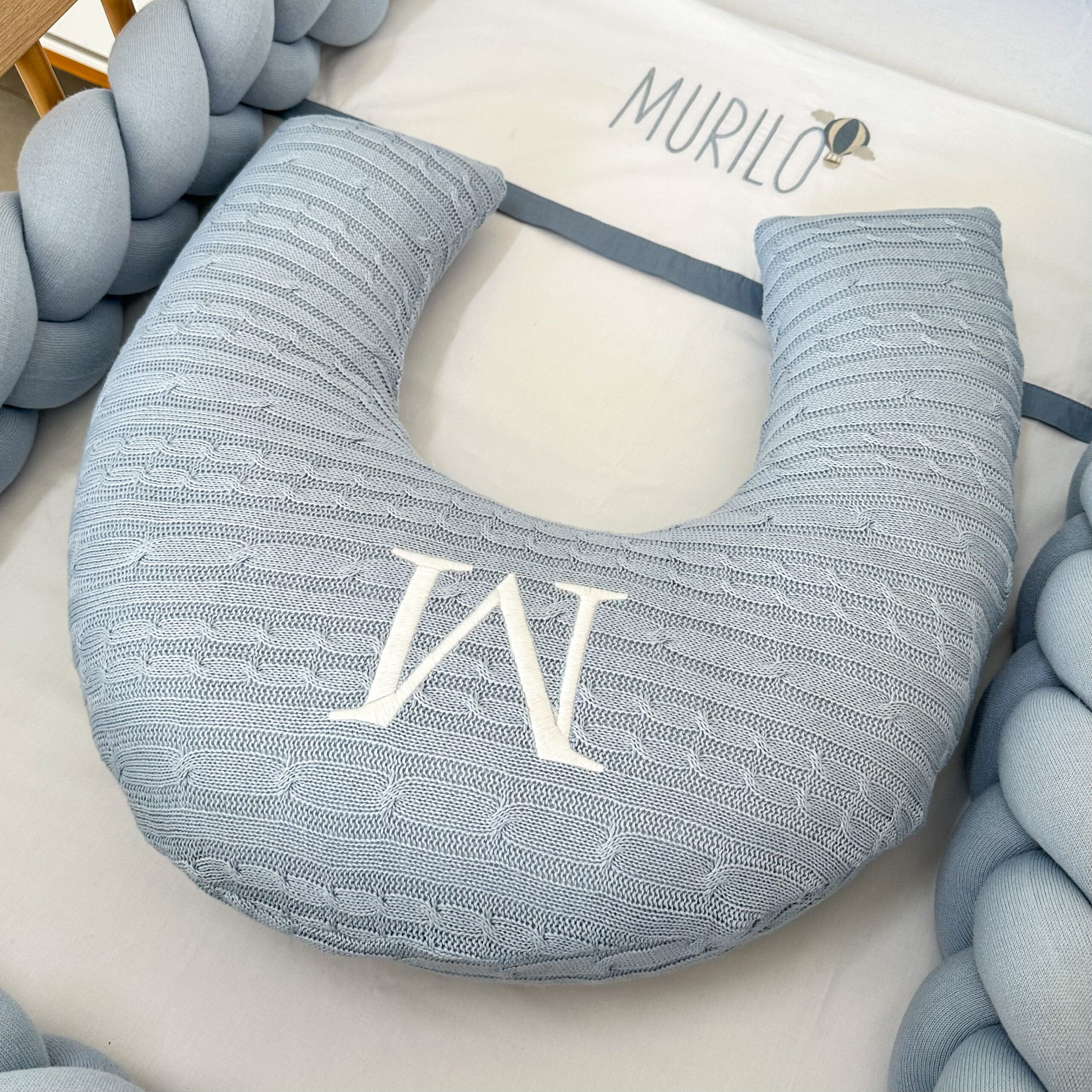 - O design em formato de U facilita o apoio dos braços da mamãe e o enchimento firme garante conforto e segurança para o bebê;