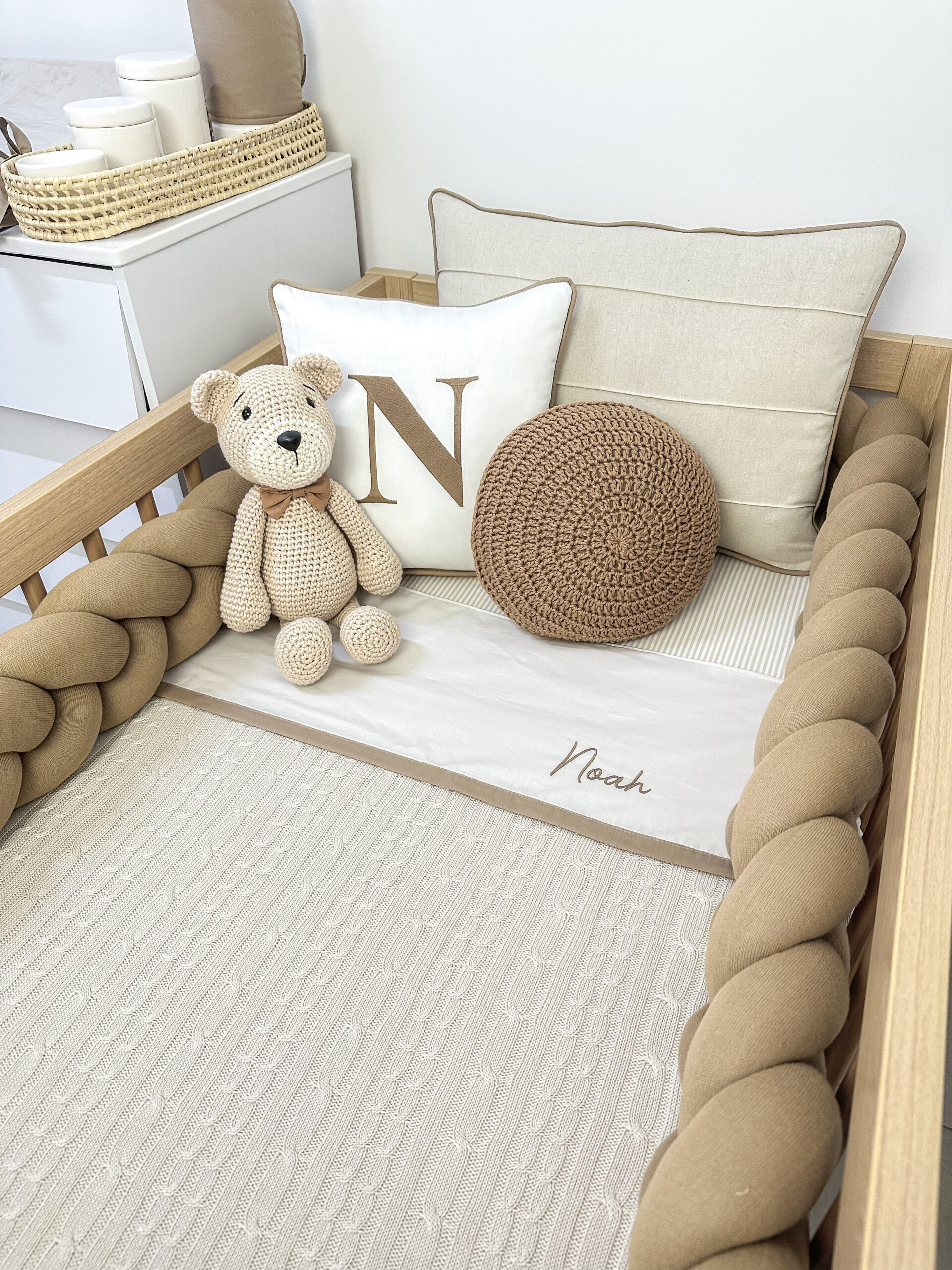 Mais que um protetor de berço, uma declaração de cuidado e bom gosto. Cada peça do Kit Berço Irmãs Sampaio é cuidadosamente selecionada e confeccionada para garantir a máxima proteção e bem-estar do seu bebê, envolvendo-o em conforto e suavidade, enquanto adiciona um toque de design exclusivo à decoração do quartinho.