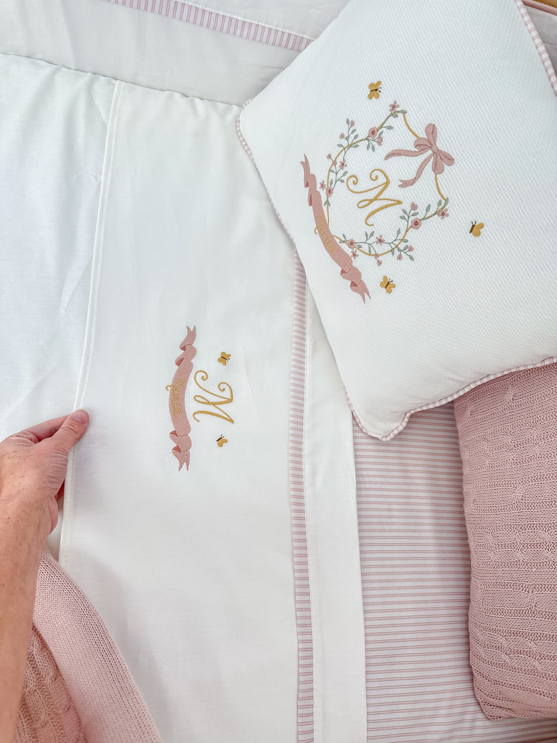 Mais que um protetor de berço, uma declaração de cuidado e bom gosto. Cada peça do Kit Berço Irmãs Sampaio é cuidadosamente selecionada e confeccionada para garantir a máxima proteção e bem-estar do seu bebê, envolvendo-o em conforto e suavidade, enquanto adiciona um toque de design exclusivo à decoração do quartinho.