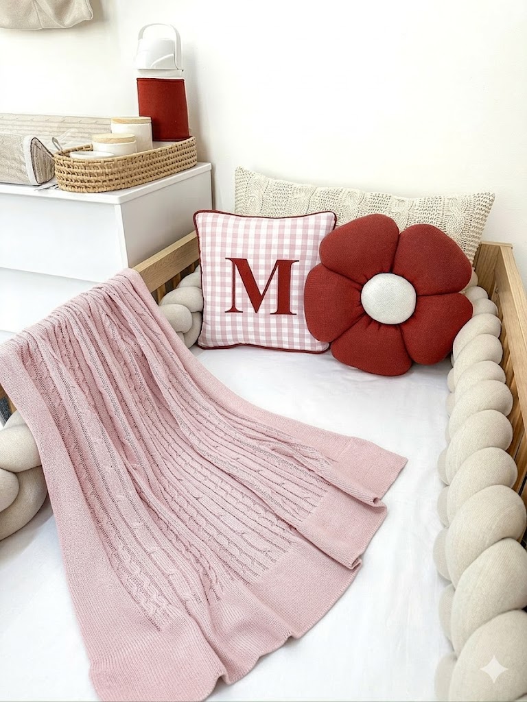 Kit berço tricot floral bordo