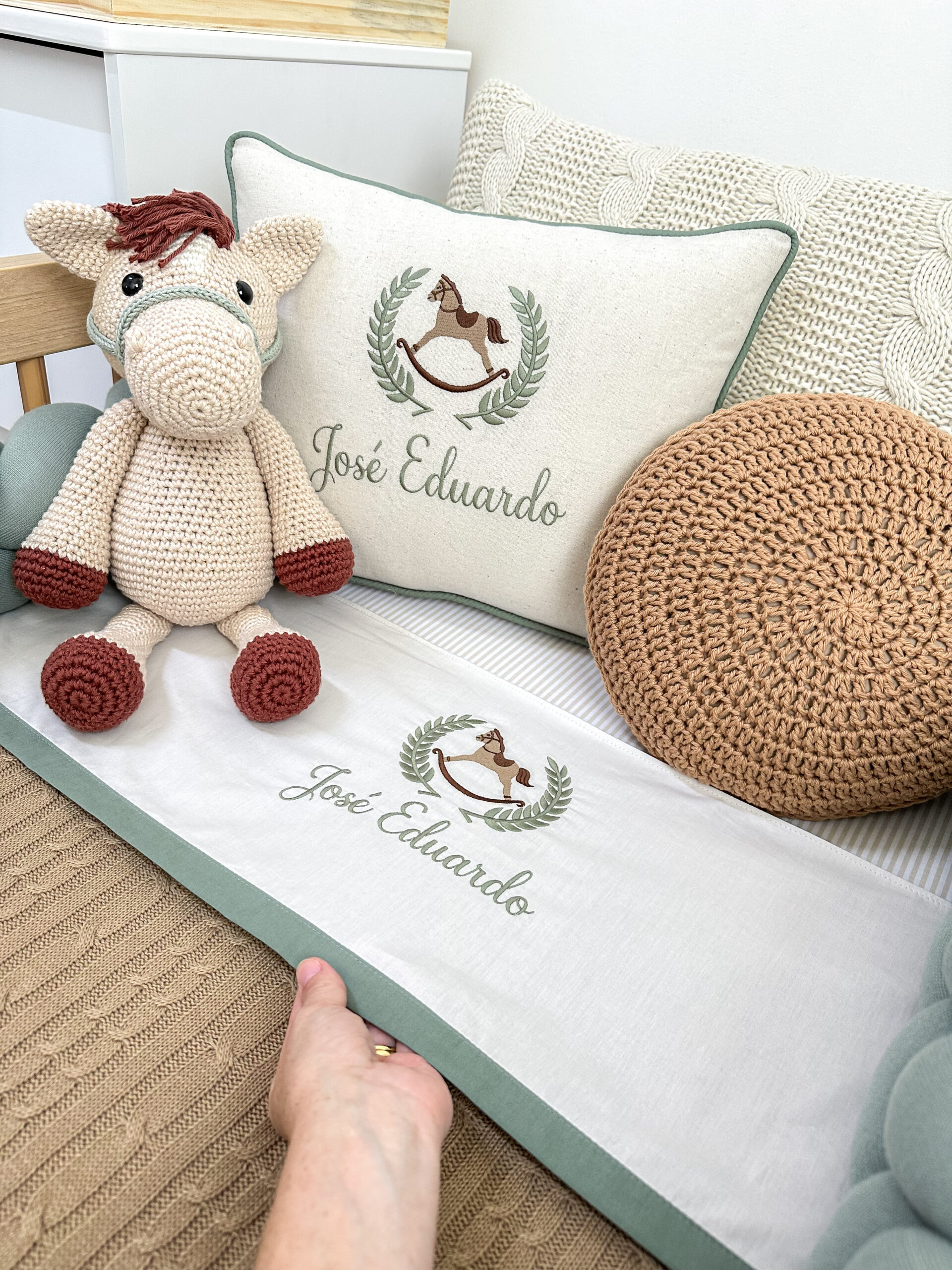 Domingo vi no Instagram o nosso kit sendo mostrado pela Marina, foi uma emoção tão grande e agora tê-lo aqui. Montei no berço só para ver como fica (hahaha), mas o quarto ainda não está pronto. Assim que ficar, mando fotos oficiais.