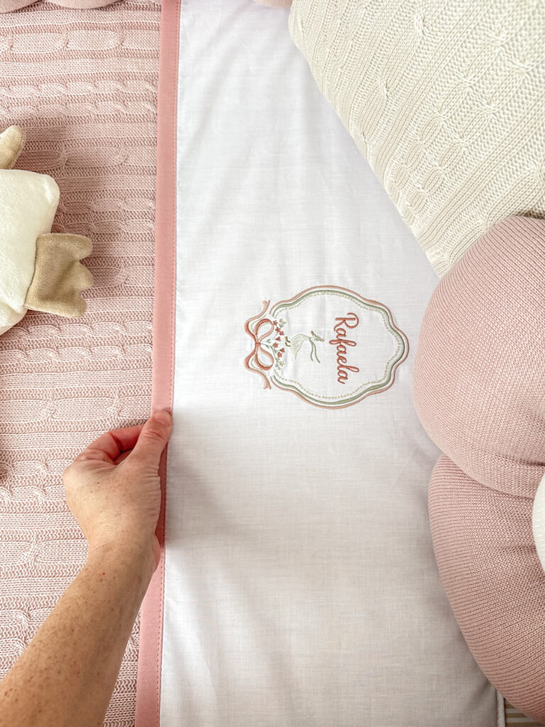 Lençol de cobrir bordado para berço americano.
