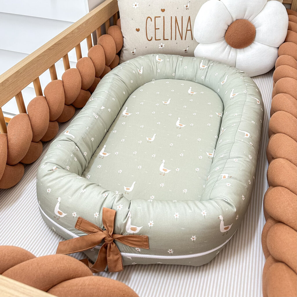 O ninho redutor para berço foi desenvolvido para ser trazer aconchego para o bebê na fase da transição do útero para o ambiente externo após o nascimento.